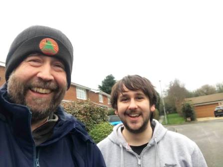 From Gun G/SP-013, I drove down through Leek and the Staffordshire Moorlands, through Derbyshire and into Leicestershire. Much of my drive to Coalville was kept entertained by listening in to Jordan's ongoing activation. I even called in myself at one point, as M1EYP/M to give him (sort of) one extra QSO. I parked on Vercor Close where Jordan now was, having descended, and we had a quick natter - and, of course, a selfie!