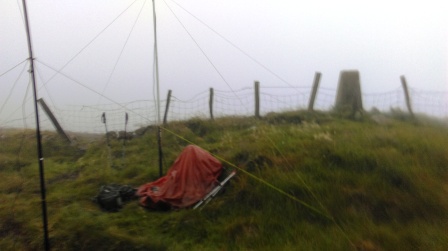 Jimmy hates being in the bothy bag with me, but not as much as he hates being out in heavy rain! I'm not the world's biggest fan of being in a bothy bag with Jimmy either! My prime concern was getting the SOTA 6m/10m Challenge multiplier, so I let Jimmy have first dabs in the 2m contest while I tried for something on 28MHz. Nothing happened particularly easily. Jimmy got Dave GI4SNA right at the start of the contest, but then neither of us got anything at all for nearly half-an-hour. Fortunately I then got three stations in eleven minutes on 10m CW, giving me the multiplier and taking me to the verge of SOTA qualification. Jimmy picked up a local 2m FM contact, and then, another half-an-hour later, a second contest QSO. I took the mike and worked Dave GI4SNA for my SOTA qualification, and finally a couple of Scottish contest stations sealed the deal for us.