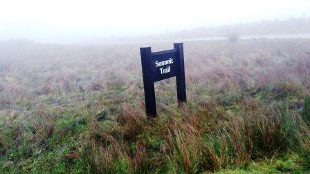 Well it was great. The weather wasn’t ideal on the afternoon of Tuesday 21st November 2017 - some fine drizzle in the mist initially, but constant fog meaning no views at all. Great walk though. You could now drive along the access road as far as the car park at the new (since we were last there) visitor centre. We took careful note of the sign that told us the gate would be looked at “4pm sharp” and began our walk. We followed the “Summit trail” which was a great circular route mainly on metalled roads but with a large section on a new zigzagging engineered path.
