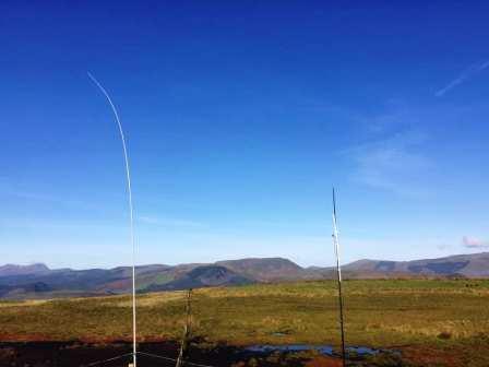 The "summit" was entirely featureless rough moorland. There was a stiff breeze blowing, so I chose to descend slightly on the lee side and set up at a convenient fence corner. Jimmy elected to do likewise after some deliberation.