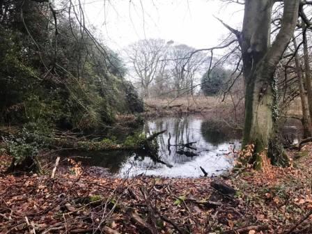 Drop into the bottom of Big Wood to cross a wooden footbridge. Another muddy path the leads between the trees out onto Chelford Road, Prestbury.