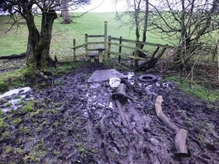 The public footpath progresses in a southerly direction over Yew Tree Farm and Walnut Tree Farm. In places it is difficult to follow on the ground, but careful looking ahead can usually pick out the next stile.