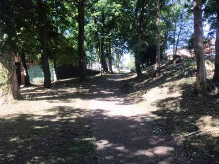 This is a very muddy path, not designated as a public right of way, but in customary use. This leads initially to the grounds behind Macclesfield Leisure Centre, overlooking the 400m athletics track. Continue ahead, atop the embankment, and into another wooded area behind Fallibroome School. This is private land, but walkers are allowed here when the school is not in session.