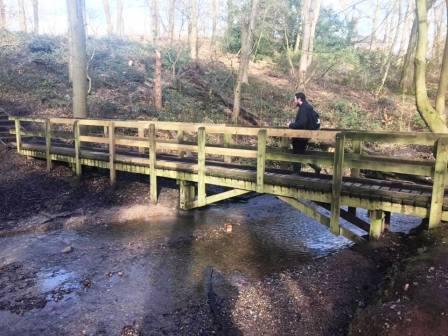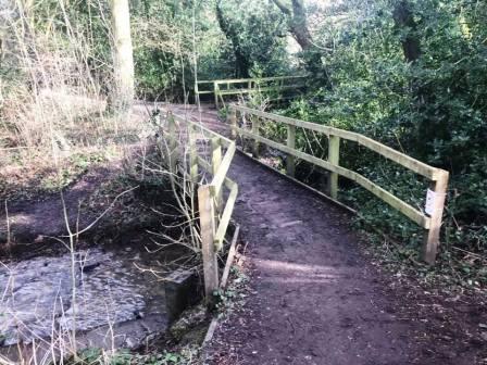 Very shortly, turn left down some steps to cross a wooden footbridge, then climb up the other side of the wood.