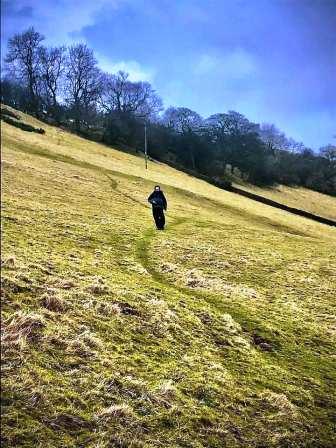 Just after Cliffe Farm, look out for a public footpath leading off on the left. Climb up the wall and stile, and set off along this path towards Higher Hurdsfield.
