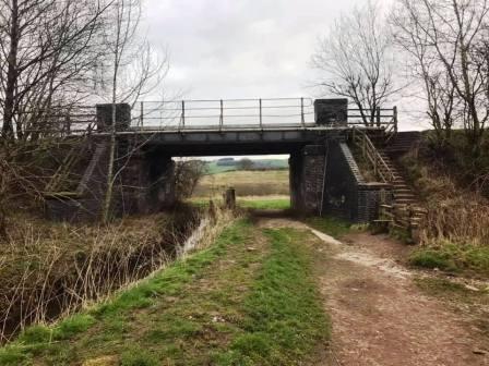 Continue down the old railway line until a stone bridge becomes visible. The exit onto the road is on the right just before the bridge, and the route is complete.