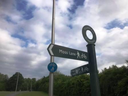 At the top of Brooklands Avenue, head into the footpath/cyclepath to the left of the entrance to All Hallows School. This follows around the back of the school boundary until it rejoins the official route of the Flower Pot Greenway just ahead of the Bollin Meadow Grassland.