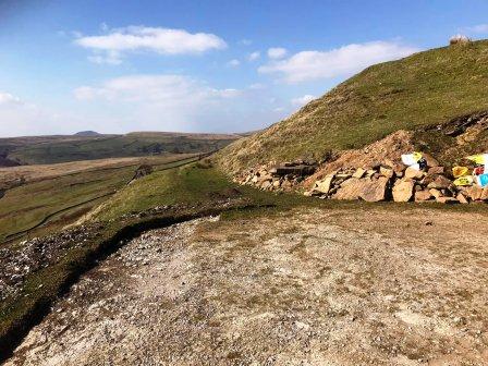 The terrain now flattens out and we meander through the quarry workings and onto the main track which is heading in a westerly direction.