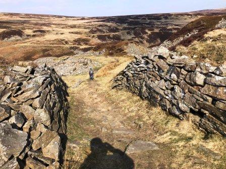 The path morphs into a very historical-feeling packhorse trail with steep slopes on one side and drystone wall on the other.