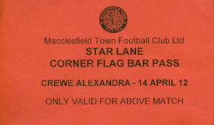 Bar pass, v Alfreton Town 2012    Home v Alfreton Town 2012