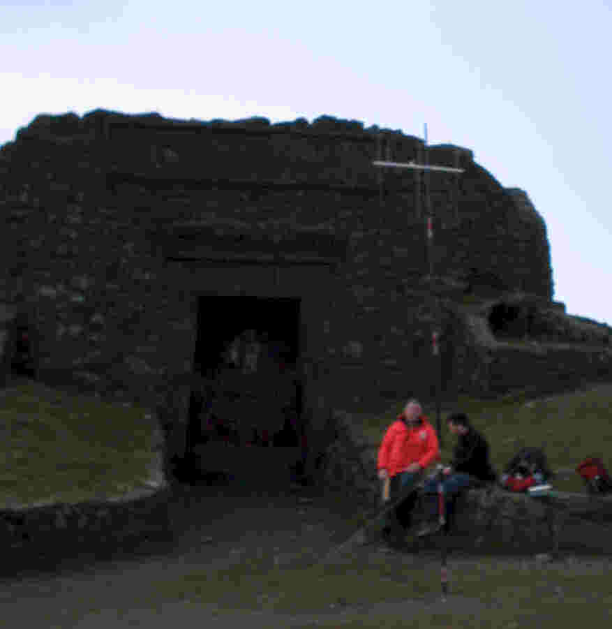 This summit was jointly activated on 10th January 2004 by myself and Riley G7GOD, accompanied by Jimmy & Liam. Having descended from our first summit of Foel Fenlli GW/NW-051, we headed up the Offa's Dyke Path from the other side of the car park. A few minutes along we met Keith G0OXV as expected, as he was descending from Moel Famau and moving on to Foel Fenlli, indeed a direct swap with ourselves. We continued up the path to the summit of Moel Famau, featuring the Jubilee Tower, achieving the summit in around one hour.