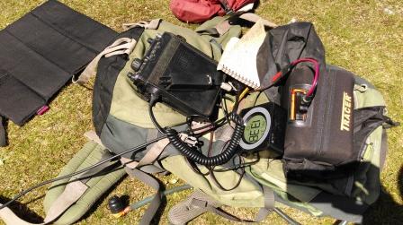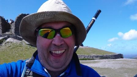 It was warm and sunny most of the way up, but at the summit it was cold and sunny, so fleece and Goretex jacket were added swiftly. I set up the 10m GP vertical between Jubilee Tower and the trig point, and got on with operating.
