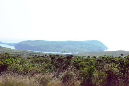 Jimmy directed us to the south west of the island, close to the villages of Port St Mary and Port Erin, and then up the hill to a bit of a parking area by the start of the track up Mull Hill. Although it was now past 6pm, it was still very hot in glorious sunshine, so it was necessary to apply suncream and don sunhats. The walk up the track was very short and easy, but yet it was noted that the track was driveable and quite a few people would drive their cars up here to a higher parking area, from which the walk to the summit was no more than 100 yards.