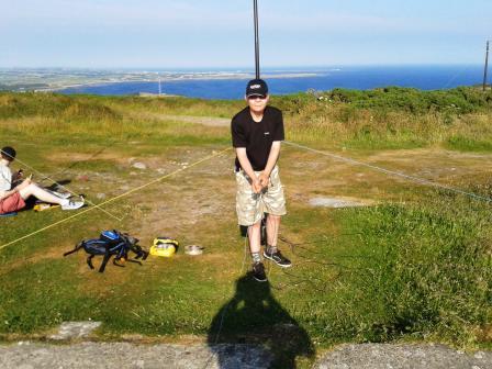 Well that should have been that, but I was awake early on our last morning of Saturday 27th July 2013. As such, I left the three "sleeping beauties" in their sleeping bags and went to treat myself to an early morning activation of Mull Hill. Prior to setting off, I deposited Jimmy's and Ed's hand-portables in the tent in case they got chance to work me before I left the summit. I set up for a straightforward 20m CW activation. Without use of Jimmy for updated spots - my 'phone wasn't working at all in the Isle of Man - I decided that PSK31 or SSB would stand little chance of success. So I simply alerted my activation using the campsite Wi-Fi before setting off, and stuck to my plan of 14MHz CW.
