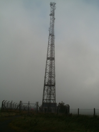 Jimmy and I walked up the transmitter access road on the other side of the fence - for about a minute - and then we were on the summit! In fact, the parking spot would have been easily within the activation zone, but we are purists! Jimmy even more so than me, for he crossed the fence in order to lay hands on the trig point. I remained on the tarmac of the transmitter road and began to set up the 40m dipole. Conditions were not great, but there was nonetheless a reliable flow of ten chasers in eight minutes, at this early hour on 40m CW, as I operated as MO1EYP/P. Things were not quite so straightforward for Jimmy 2O0EYP/P. As expected, he didn't raise any interest from his 2m FM handheld, and came onto 40m SSB. Four contacts were made within about ten minutes of operating, mainly thanks to chasers keeping an eye on our self-spots. We packed up and "descended" to the car, in order to drive across to our second summit of the six, Mynydd Llangyndeyrn, GW/SW-039.