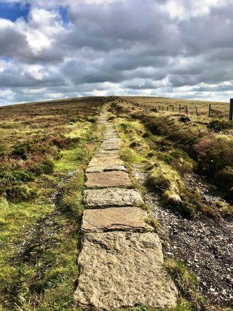 Stop for a rest or spot of lunch on the summit if required. Continue over the summit to join the steep flagged stairway down towards Macclesfield Forest.