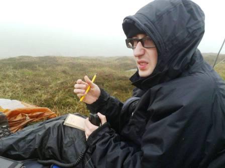 We reached the summit in light but constant rain, hence we set up quickly in order to take shelter in the big bothy bag. Jimmy and I managed to get our initial contacts fairly reasonably, on 2m FM and 12m CW respectively. However, we both then faced real challenges to add to our logs. Fourteen minutes later, I got through to IK2ILH on 12m SSB and eight minutes later I got a S2S with HB9CAT/P on HB/TI-101, back on 12m CW.
