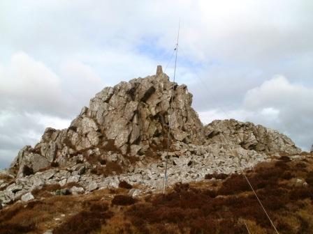The familiar path up to the Stiperstones was taken, and the last bit on uneven jagged rocks piercing through the soil was as uncomfortable as ever. You had to watch where you were putting your feet! Again it was breezy and cool, so again suitable shelter was necessary. This was found of the summit rocks, and I set up the 30m dipole here.