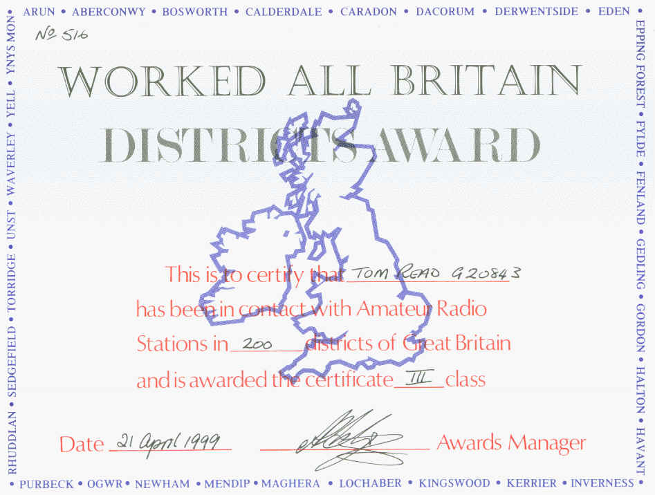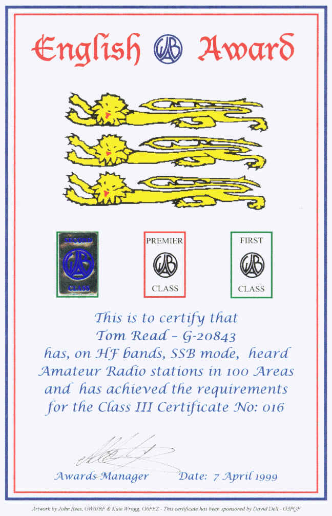 English Award (with 2nd class endorsement)    Isle of Man Award